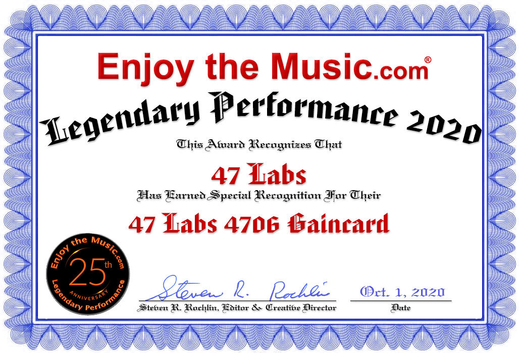 Just when i feel a good understanding about audio, something like the 47 Laboratories Gaincard comes along and destroys it. How stupid could i have been? A reviewer in this industry must have extreme honesty with a very open mind unhindered by the politics. Politics in this industry which make me really sick by the way and have no bearing on being honest to their readers. Simply having an open mind is one thing, but being honest and willing to go against all those preconceived notions and politics is another. It is called chutzpah! So there i was kicking myself in the butt about going to the Hi-Fi '99 show in Chicago and not the great show happening at the same time in Germany. Ahhhh, Germany. The autobahn, Porsche... Nürburgring! In fact Hi-Fi '99 was a very casual and enjoyable show because there were no big crowds of people to contend with. While casually strolling through one of the lower levels i came upon a room which used the 47 Laboratories product. The room was sparse visually as i recall and what really got my attention were this very small product which was putting out incredibly good sound. A gentleman showed me this amplifier called the Model 4706 Gaincard which needed the Power Humpty power supply (gotta love the Japanese and their unique product names). The Gaincard was, well, this very small at 6.75" wide by 6" deep and 1.75" high that weighed only what seems to be a fraction of one pound! Seriously!