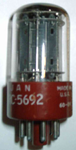 RCA 5692. Legendary tube with the red base. Definitely softer, more rounded, duller. Less essy too. The MFA Luminescence comes standard equipped with 5692's. The fact that they come in last in the sweepstakes does not in any way imply that the OEM is a knave and a scoundrel. (Obviously not, given the high cost of this tube.) The 5692 is a militarized version of the 6SN7, originally designed to work with artillery (all the vibration was destroying tubes at a frightening rate). Scott Frankland (the F in MFA) has written that they chose the 5692 because of its longevity (10,000 hours!!!). All that ruggedization paid off. And they liked the sound. I happen to disagree with the latter assessment, but that's just my opinion. It took the Sovteks three years to go microphonic in my unit. In my book, that's an acceptable time between replacing tubes as is the replacement cost (my chosen Sylvania 6SN7GTB's cost around $40 each).