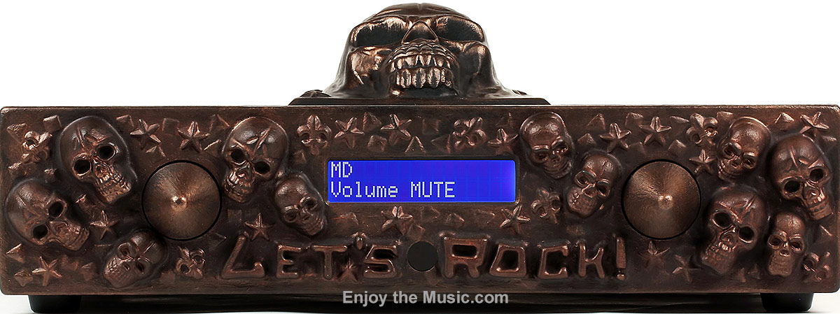 "Differentiate or die" – the popular business catchphrase is as important today as it was a hundred years ago. While it is most relevant in the world of mass-production products, it seems to be entirely legitimate within our world of perfectionist audio. Aaron's Let's Rock! integrated amplifier as reviewed here, is surely a standout product visually. Within our home turf here in Europe, we usually care about the technical side of the product. Aaron's Let's Rock! is surely within that category. Naturally the company's literature is full of descriptions of special design concepts and solutions, technologies, materials, ideas and philosophy. That is perfectly fine, as this is what our hobby is all about. When it comes to visual design, audiophiles turn out to be generally by very traditional consumers. The model that was developed in the 1970's, where audio products look like lab or recording studio equipment, with low, deep and wide enclosures, and the front panel being the only thing that matters, has survived almost unchanged to this day. As you can see with this review of the Aaron Let's Rock! integrated amplifier, the company chose a highly handcrafted, artistic styling of skulls that would make any enthusiast of such musical genres as rock, metal, alternative, punk, etc very proud. Perhaps, even more so, Aaron's company owner Thomas Höhne has become part of this new generation that demands both substance and style. In 1986 he founded High-End Consumer Electronics Distribution Company m.b.H. with his wife, Marita Höhne, to "faithfully reproduce music" as we read on various high-end audio websites. The company's full name was too long for a brand name, which is why Mr. and Mrs. Höhne chose its shorter version to emphasize the reference status of their amplifiers. They also wanted to focus their attention on these products to ensure high quality performance. It did not happen all at once; however, as they were selling their first amplifier from 1986, the A300.M monoblocks under the brand name Neumann Audio Technik. Thanks to the success of this project, the company's product lineup was soon divided into two parts: a top high-end line called Sovereign and "only" high-end Aaron. Both of these replaced Neumann Audio Technik in 1989. I stared this review of the Aaron Let's Rock