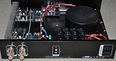 two RCA inputs and a set of gold plated speaker terminals. Taking off the cover