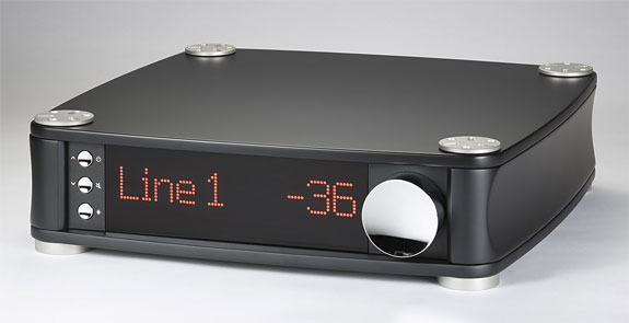 Before moving on to the sonic merits of the amp as well as some impressions of the complete system, let's have a word about the equipment: The large display – comfortably readable from a distance even for an older gentleman – shows the currently selected input and volume. Of course, no potentiometer is used for controlling it, but an electronic solution that knows neither noise, hum, distortion, or channel imbalances, as the head of development explains. The display can be dimmed in several steps, and even be switched off completely if desired. The volume control knob sits comfortably in your hand and its mirror-smooth surface is a successful contrast to the otherwise simplistic appearance of the Aavik in our opinion.