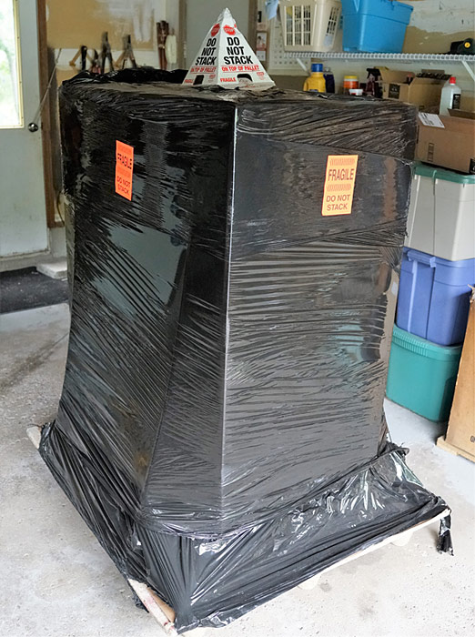 We strapped each one to my refrigerator hand truck and bumped it up several steps to get into the house and then down one step into the sunken living room that serves as my dedicated listening room. The wooden floor is double-joisted and I have 4x4 posts in the basement directly below where I place the Kharma. Un-boxing the speakers was relatively straightforward, once I figured out how to release the plastic locks that secured the outer box to the inner one. It was also helpful to have two people lift the outer box – not that it is difficult or heavy, but pulling up on all four corners simultaneously keeps one box from binding on the other.
