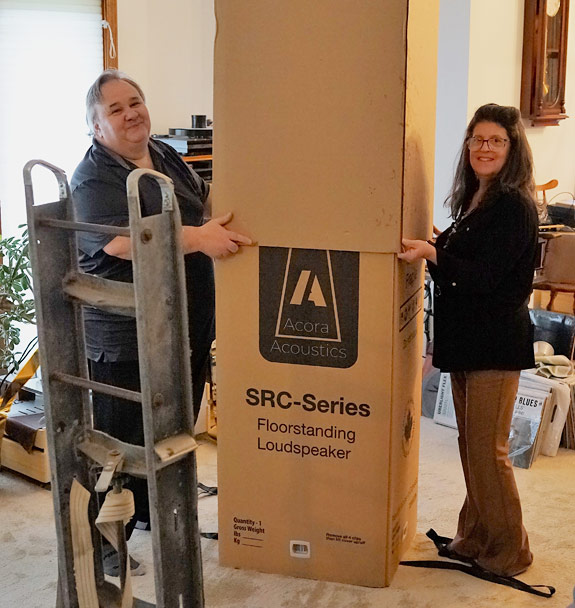 Fast forward again to last August when a freight truck unloaded a palate with a pair of the QRC 2 speakers in cardboard boxes for me to review. I had been hedging on reviewing Acora speakers because they are so heavy they would be difficult to move around, and they are so good I would be tempted to buy them. My Kharma Ceramique speakers, at a bit over 100 pounds, are tough enough to scooch across the carpet. Moving speakers, from time to time, comes with the territory when you're a reviewer. It wasn't until I finished the Toronto AudioFest 2023 report and was well into the Capital Audiofest 2023 Chronicles that Val finally came down to Rochester to set them up for me. At over 185 lbs each, I couldn't handle them alone.