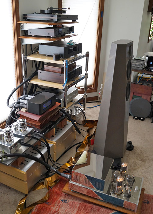 Also in my review cue was the new Backert Rhumba Extreme 1.4 tube preamp. What could I lose by adding that in place of the original Coincident Statement Line Stage? Nothing, as it turned out. Among the benefits gained were a deeper, tighter bass and a more finely resolved treble, both of which, along with the previous tweaks, brought the performance of the Acora Acoustics QRC 2 above the level I recall from numerous shows. Of course in my smaller room with a smaller listening triangle, it is not going to sound the same as in the cavernous rooms Val typically occupies.