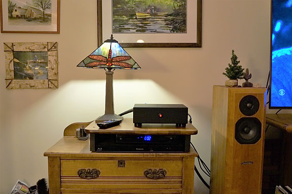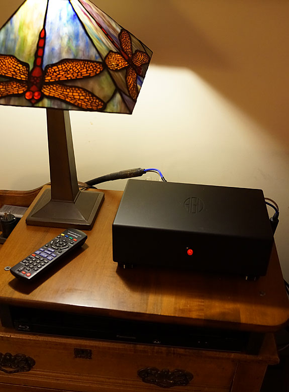 When Linda came into the room her first words were "Oh, how much does that cost?" in a tone indicating a very positive WAF. The Tempo is decidedly smaller and less conspicuous than the large Eddie Wong integrated amp that bristles with eight tubes and four transformers. The Tempo is also considerably more powerful than Eddie's amp which puts out six single-ended Watts per channel from two EL34 tubes. With the AGD Tempo di GaN amplifier, the Coincident speakers snapped to attention with higher resolution yielding more intelligible dialog and greater dynamics with tighter bass. The black anodized finish that was less attractive amongst the bling of my big rig was pleasantly unobtrusive in the Adirondack décor of our family room.
