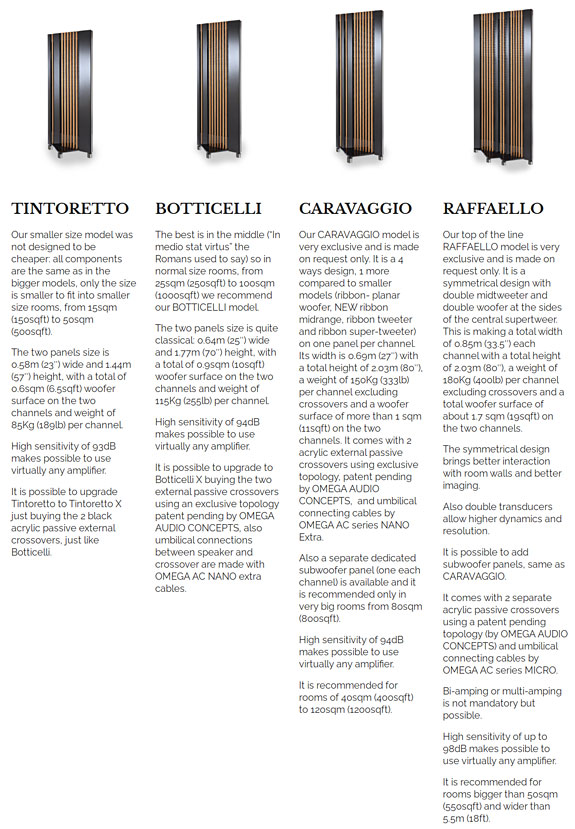 I was first introduced to the seductive voice of these remarkable Spanish planar dynamic loudspeakers at the 2017 "apostate" HiFiDeluxe audio show held at the Marriott München. Just a ten-minute drive south, and slightly west, of the Munich Order Center, home to the annual "High-End Munich", the largest annual audio show on earth, this "overflow" audio event runs coincident with the larger, more established event every year. Now, I should make it clear that I have never been a blind devotee of planar dynamic loudspeaker designs such as those from manufacturers like Eminent Technology, Magnepan, or Wisdom. I have always felt that their inherent disadvantages, their typically low sensitivity and impedance, often just fractions of an Ohm, along with their comparatively muted dynamic and scaling capabilities, especially from the mid-bass region down, tended to outweigh their benefits, that of the enormous sense of space, air, and front soundstage depth that their native dipolar radiation pattern gifts them, and their lack of "boxy" colorations. But from the moment I walked into that Munich demonstration, with all electronics and cabling from Italy's Omega Audio Concepts, I was captivated. The sound was liquid, with a bold, rich tone, generating a spacious and accurately sized soundstage. Their presentation was finely layered, with vivid dimensionality, a scary-natural presence, and they pulled a complete vanishing act. And I found myself doing a double take when I heard their remarkable bass extension and their blistering transient attack and dynamic prowess, especially with percussion and other low-frequency information. If you are familiar with the sonics of other planar dynamic loudspeakers, you will appreciate that last sentence. Daniele Coen, Alsyvox owner and designer, was on hand in Munich back in 2017 to witness my awe, and to discuss some of the technology when I expressed my interest in reviewing the Botticelli. I soon came to learn that as much as he'd love to have me review this amazing loudspeaker, at that time we were thwarted, as he had no USA importers or dealers. The following year I was treated to the splendor of the full Italian Alsyvox Botticelli/Omega Audio Concepts system experience once again, this time, here in the US, at the 2018 Rocky Mountain Audio Fest. It was one of the most captivating systems I heard at that event and earned a spot among the "Best" systems covered in my resultant show report. In the spring of 2018, the Alsyvox product line consisted of three models. As well as the superb Botticelli, there was one lessor model, the Tintoretto, and one larger model, a four-panel, five-way dipole ribbon loudspeaker, employing two panels and two external passive crossovers per channel, the Caravaggio. While I've still never heard the Tintoretto, I did hear the prodigious Caravaggio the following year, at the 2019 HiFiDeluxe. My most recent experience with them, the one that catalyzed this audition, occurred at the inaugural Pacific Audio Fest, held over the end of July and the first of August last year. Room 2203 of the Seattle Airport Doubletree by Hilton featured the Botticelli X, highlighting its optional eXternal crossover, a collaboration with Italy's Omega Audio Concepts. Robert Visintainer, the founder of Rhapsody Audio, and the current US Alsyvox importer had reached out to me before the show to extend an invitation to visit, one I was damn sure looking forward to, and one that proved to be every bit as exciting and engaging as all those previous.