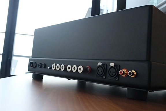 Around the back of the amplifier you will find IEC in, two fuses, and left and right speaker outputs (with both an 8 Ohm and 16 Ohm output.) You will also find a speaker selection switch, which will mute the 8 Ohm speaker or headphone output respectively.