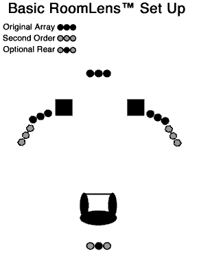 website, but the user is encouraged to experiment, as each room has a distinct sound. That is how I started. In my room, the effect of the default placement was immediately noticeable. The overall soundscape was narrowed slightly (maybe 10%) but became much more focused and defined. One had the sense that instruments and voices snapped into place with the RoomLens in place, where they had been pleasantly diffused without it. In addition, the center unit - whether because of its placement in between the speakers and a bit behind them or because of what it really is doing to the sound - concentrated the center image in a striking fashion. At the same time, that center image, though much better defined, did not shrink in size. Again, removing the center unit allowed the sound to wander around some, even though the image was still well-centered.