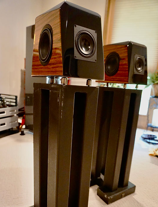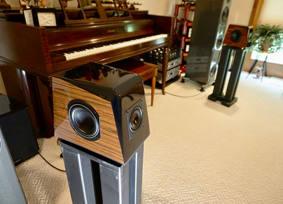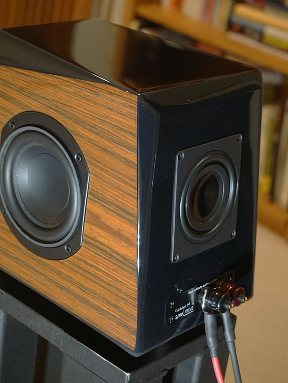 What If... Shortly thereafter, the 1+1 was introduced - A compact, bi-pole monitor, employing an active 3" driver on both the front and rear baffles of a trapezoidal cabinet, wired in-phase, and reinforced by two 4" passive radiators on either side. The objective was to create an ultra-small footprint, high-resolution reference monitor that offered the utmost in musical truth, presented in a highly-refined, impeccably crafted cabinet, all with the ability to appear and perform at a level significantly above its price point. Twelve years and seven upgraded versions later, the 1+1 V5 loudspeaker design has emerged from its rite of passage honoring this objective.
