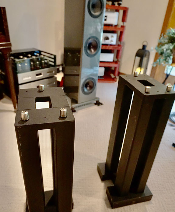 I'm not set up for a practical desktop assessment of the 1+1 V5, so my evaluation was carried out exclusively in my main reference system. This required stands, which John was kind enough to accommodate. Audience works with Sound Anchors of Palm Bay, Florida to provide interested ClairAudient 1+1 V5 owners with a custom-tailored monitor stand. These are quite heavy, made of 0.25" aluminum. Weighing in at approximately 100 lbs, each, they provide rock-solid footing and coupling. Though the stands provided for this review were a fixed height of 25.25", height and number of columns can be accommodated per customer. Stillpoints isolation footers, such as the mini risers serving on my samples, can be added for $150 each. Audience also offers a desktop stand ($75/pr) that raises the monitors a few inches and angles them upwards toward ear level. For either set-up option, I would highly recommend the use of well-designed aftermarket decoupling footers that do not require internal threading (as the cabinets do not have inserts). I found the small rubber adhesive footers provided to be inadequate, particularly when considering the speaker's lightweight. In lieu of my reference Silversmith Fidelium speaker cables and in the interest of designer congruency, I opted to review them with a provided pair of Audience Au24 SX speaker cables. For separate interest, Audience provided me three of their power cord models to audition with my Kronos Sparta turntable power supply unit – The forte f3, Studio ONE, and frontRow. Admittedly, an altogether debatable topic here, to be sure. However, sometimes the only way to know is to ignore mechanical/electrical logic and simply listen. Perhaps a review / discussion for another day....
