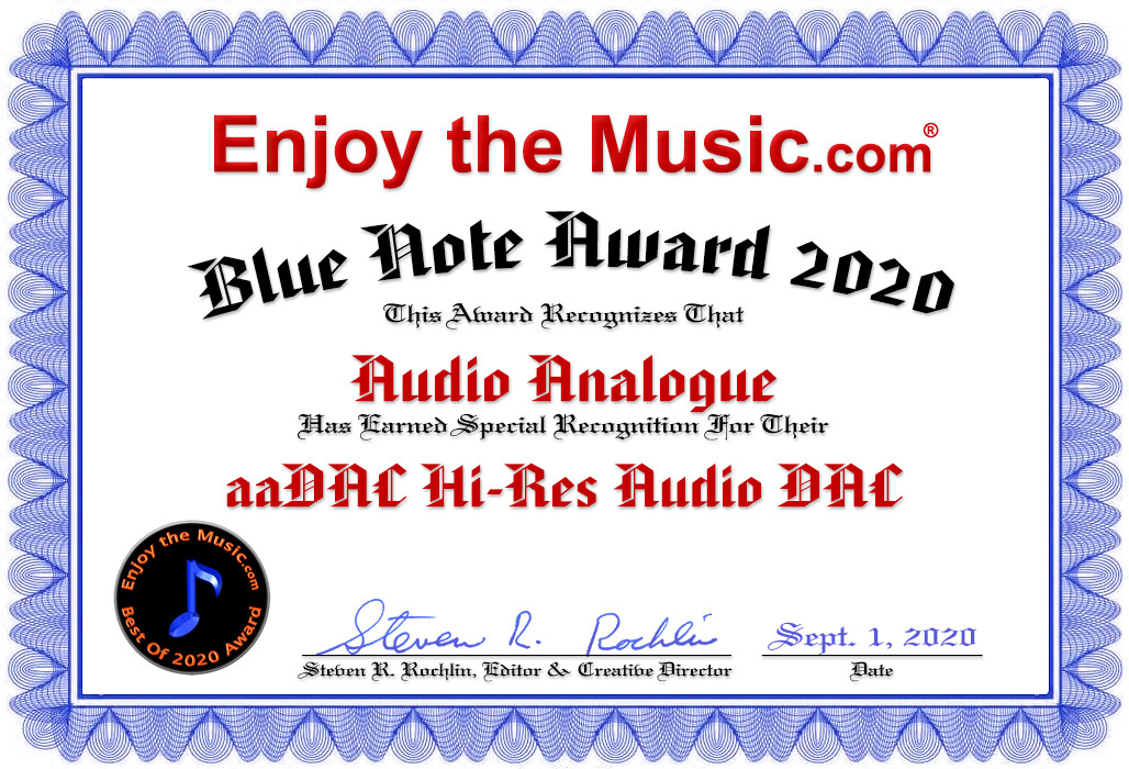 Audio Analogue's aaDAC digital-to-analog converter is the latest high-end audio component from their PureAA line, which also includes their AAcento integrated amplifier and AAphono phono preamplifier. Audio Analogue says on their website "the aaDAC is a product that perfectly fits in the Audio Analogue philosophy: its simple design, its remarkable sound performances and its great care for the finish and the materials and parts selection, make it a perfect partner for your digital sources". At first glance, this statement might seem like typical audio manufacturer's advertisement hyperbole, but since reviewing Audio Analogue's Maestro Anniversary integrated amplifier in October of 2019, I can say with absolute certainty that if this digital-to-analog converter shares any of the sonic and appearance qualities of this integrated amp, then their description of this component is spot on. Audio Analogue's aaDAC converter and the Maestro Anniversary integrated are very good-looking components. I've found that more often than not, an audio component that has been designed in Italy is going to appear as if the designer paid as much attention to the appearance of the component as much as its sound quality. Of course, I consider the sound quality to be much more important than a component's appearance, but there is certainly nothing wrong with a component looking good, too. Audio Analogue's aaDAC features are plentiful, and it seems to have more to offer than many other converters within its price range, including, but is not limited to, a remote, a headphone output, the intensity of its front panel LEDs can be regulated, it has a Bluetooth receiver, one can change its channels balance, has seven different digital filters, and if this DAC is set to volume regulated mode it enables it to also work as a preamplifier. Some audiophiles might put the Audio Analogue's $4300 price tag either in the "affordable" or "mid-priced" category. Either of these terms will seem laughably naďve, or even patronizing to non-audiophiles, although those who might even shyly admit to being audiophiles know all too well that this price is nowhere near one that we would consider outrageous. Regardless of all its features, the sound of the aaDAC is what is most important to any audiophile worth their salt, and although all converters are getting better as time goes on, and spoiler alert: the sound quality of the Audio Analogue aaDAC has more to offer than any other DAC within its price class than many other converters I've heard within its price range.