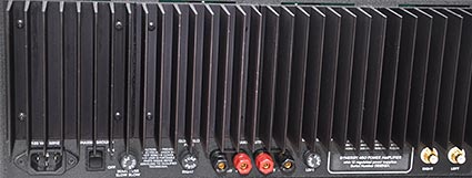 fuse holders, a unit power on/off switch and loudspeaker output connectors.