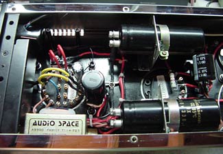 The Audio Space 6M uses a 'Class A,' Push-Pull approach. The amplifiers are operated at a constant 60mA bias current as opposed to 30mA to 40mA in a standard 'Class AB' design regardless of signal level. The internal wiring on the driver stage is done with solid core silver wire with Teflon dielectric. The output stage utilizes standard copper hookup wire. As you can see, the internal wiring is very clean and compact. Critical interconnect wiring is tightly twisted to prevent unwanted transmission of EMF's and the like. The small PC board houses the interstage coupling and the driver tube bias circuits. Everything else within the Audio Space amp sports point to point wiring. An interesting feature to this amp is the fact that it has switchable, negative feedback. One of the switches on the front of the unit allows you to apply a nominal 3.5dB of negative feedback to the circuit. It's actually a nice feature. In fact I added this modification to my big KT88 monoblocks some time back. This feedback switch allows you to do some additional fine tuning to your music. Recent converts to the tube realm may find the addition of feedback a little more aurally pleasing since it (essentially) cancels some of the even harmonics that tubes are so noted for. The feedback circuit is said to add some ‘stability' to the overall amplifiers performance. Feedback also increases the amplifiers bandwidth and can add a skoash of damping factor to the total design by lowering the amplifiers output impedance. All in all, feedback need not be a bad thing in all cases. That said, personally I'm not a big proponent of feedback. I'd rather have my music served ‘straight up' just like my scotch, but that's just my opinion so take it for what it cost you. Another cool feature of the Audio Space 6M's are the fact that you can either use these as a standard amplifier with a preamp or you can plug in up to two sources into the back of these units and use the integrated volume pot on the front of the unit. Switching between the two sources is accomplished by a simple rotary switch located on the left side of the faceplate of the unit. As far as the cosmetics of the Audio Space amps go, these are very stylish looking. The main chassis is highly polish, heavy gage stainless steel. This means there is no possibility of rusting in a humid household environment. The front faceplate on the review samples is also polished with a raised black border. Just below the gold nameplate is a single, bright blue LED power indicator. The power and output transformers are cased in a glossy metal-flake black pot. On the back side of the amps is the standard fare of gold plated RCA female jacks. The binding posts are nice quality gold plated brass with knurled tightening jacks. Here is an item of note. As I read through the manufacturers instructions, I notice that the Audio Space 6M's are warranted for a full 24 month's. That a damned good warranty period for a piece of tube gear. The vast majority of competing manufacturers only offer 1 year. So much for the thought that Chinese gear is (or can be) inferior. A warranty like that gives me warm fuzzies. Overall, I've found the amps to be very good looking and the build and parts quality to be exceptional.