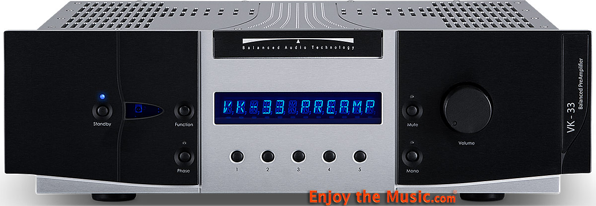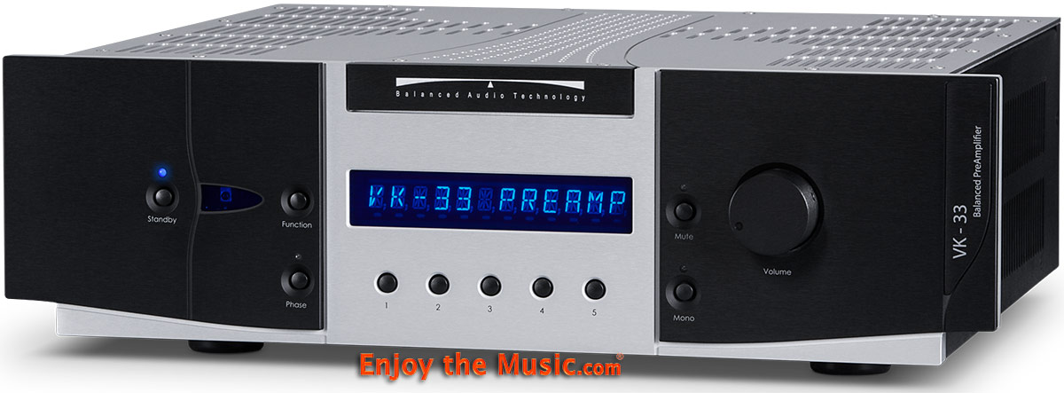 This isn't the first review, and probably not the last, where feel a bit obligated to mention my personal bias in favor of Balanced Audio Technology (BAT) preamplifiers. I acquired my first BAT preamplifier, a VK-3 in the mid-to-late 1990s after I reviewed it in a magazine that is no longer published. In the October 2008 issue of Enjoy the Music.com's Review Magazine I wrote about their VK-3iX, a significant upgrade to the VK-3. To say that I was impressed by the sound quality and performance of this preamplifier is an understatement. In its review I said that it "might be the last preamplifier you ever buy... [it] combines the best attributes of tubes and solid-state, with very, very few of the disadvantages". I also called this full-function preamplifier a bargain, not only because it is the lowest priced preamplifier that BAT manufactures, but because there is also a clear upgrade path that is available by sending the unit to BAT for many available upgrades, one of which "hot rods" this preamp. Of course, one can always upgrade one's system by purchasing one of BAT's preamplifiers higher up in their product line. The features and performance differences between their VK-3 and their VK-3iX were significant. The cosmetics were updated, and it sounded much better than the older unit. But thankfully, it seemed as if both were cut from the same sonic cloth. BAT's newest offering, the VK-33 and the subject of this review, is again, a giant leap forward sonically, plus they significantly refined its functions and updated its cosmetics. Yes, its sound remains recognizable as a BAT in the best possible of ways, but otherwise BAT seemed to have gone back to the drawing board (or CAD system where applicable) and have redesigned this preamplifier to the point where comparisons to older models are unnecessary. So, in spite of my bias, this review of the Balanced Audio Technology VK-33 ($6995, add $1000 for phonostage card and $500 for remote) will be objective as possible.