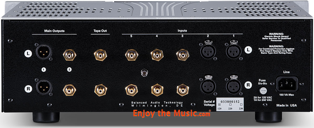Balanced The system I used to audition the VK-33 was almost identical to the one used for the LKV Line One linestage that I reviewed in the October 2014 issue of Enjoy the Music.com's Review Magazine. Most of the front end gear, including the BAT VK-33 was placed on an Arcici Suspense equipment rack. Digital files were played through a music server on an optimized PC with a Furutech USB cable feeding an Auralic Vega DAC, Benchmark Media DAC1USB, or Wadia 121 Decoding Computer. To spin records I have my reference Basis/Tri-Planar set up with either a Kiseki Blue NS phono cartridge I reviewed in November 2014 or my reference Lyra Kleos. MIT interconnects terminated with XLRs linked the VK-33 to either a Pass Laboratories X350.5 amp or PrimaLuna DiaLogue 6 monoblocks, and the speakers are my reference Sound Lab DynaStat electrostatic hybrids. A series of comical errors in transcontinental shipping allowed me to continue both enjoying and using as a reviewing tool the quite pricey Venture Audio Encores I reviewed in the May 2014 issue. These speakers are an extremely proficient transducer which enabled me to hear everything an upstream component can add or not add to the system's sound. The price of the Venture Encore is a deal breaker for most audiophiles, but this fact, in combination with their stunning sound quality makes me feel privileged every moment I spend listening to them in my system. All the front end equipment in my system is connected to an audiophile-grade power filter, but a separate one is also used to power the AC synchronous motor of the Basis turntable. A Velodyne HGS-15b sub augments the very low-end of the speakers and its power cable and the power cables from the Sound Labs are connected to a Chang Lightspeed power conditioner. The listening room's AC is provided by two 20 ampere dedicated lines, and is the room is acoustically treated with Echobuster panels – basically speaking the setup allows for absorption behind the speakers and on the sidewalls, and diffusion behind the listening position. The room's walls and ceiling are painted a "cool and soothing" Benjamin Moore lake placid blue. Right out of the box, the VK-33 sounded great. My initial impressions of the VK-33 were pretty much the impressions I had just before I started writing this review, because the traits I admire about BAT preamplifiers has always been their neutral yet very musical sound. These days, the phrase "tube sound" is usually a derogatory one, and definitely not applicable to the majority of modern tube components other than in the positive. Nowadays, it seems as if vacuum tube component designers have mastered the art of enabling their components to, if they wish, rid the unit's sound of any "tube-y" sounding anomalies and have moved on to perfect other traits of their component's sound. Vacuum tube components will never be able to totally rid themselves of their reputation for discharging heat, because that is the nature of the beast, but sonically, tubes have come a long way since they were regarded by the high-end community solely for their midrange prowess. Maintenance, especially in regards to the tubes' lifespan has also largely become a non-issue, as designers have learned not only how to extend their lifespan, but because of the internet and other factors there are plenty of good sounding, affordable, and reliable tubes to fill these components. Balanced Audio Technology, and in particular the VK-33 preamp's disinterest in having anything to do with the reputation of tube components of yore, have been able to take all the advantages of using tubes with barely a hint their disadvantages, other than the previously mentioned issue of heat. And as long as one puts some space between the VK-33 and one's other components, this too, is a non-issue. The VK-33's far reaching frequency extremes, layered soundstage, stable imaging, macro- and micro-dynamic prowess, and its extremely neutral sound made for some very enjoyable listening sessions. When playing power orchestral music I could hear as well as feel the music coming from the right side of the stage, as the double basses growled and thundered not only pitch stable bass notes, but bass notes with their lower harmonics intact. When playing the FLAC files ripped from the CD of Bruckner's Eight Symphony with the Vienna Philharmonic conducted by Pierre Boulez this portion of the orchestra was reproduced almost perfectly. A solid rendering of the low strings in all of Bruckner's symphonies are critical, not only do they convey to the listener the instrument's sonic weight, but are present to propel the orchestra forward. Bruckner uses these forces to lay the foundation for his melodies and themes that are often led by the horn section, woodwinds, and what sometimes seems as every instrument in the very large orchestra that a Bruckner symphony demands. The VK-33 is also blessed with such a noise-free background it will astonish most listeners that have grown accustomed to the sound of most tube units. Most listeners simply assume that there should at least be some background noise -- tube hiss perhaps, or just a tad of 60 cycle hum? Sorry, not through the VK-33. This quiet background allows the music to emerge from silence and give rise to an apparent increase in microdynamics, so when Boulez leads his orchestra to follow Bruckner's score in the ppp section in the 3rd movement all I could hear was behind the orchestra was the very slight remnants of the recording process and the slight rustling of the otherwise very attentive audience, and of course the ambience of St. Florian's Church in Linz, Austria, while the music floats above the calm. The modern tube sound plus the more commonly known benefits of tubes: a huge multi-layered soundstage and a dynamic distance placed between instruments occupying the same space in this soundstage, a warm and musical midrange, and most importantly, the ability to reproduce instruments and voices that palp