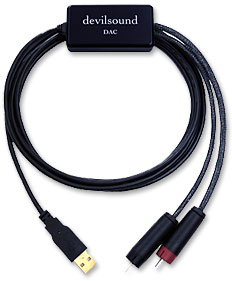 Priced at only $299 direct from the manufacturer, the Devilsound DAC attempts to deliver exceptional sonics for a mere pittance. It features a 16-bit non-oversampled D/A converter capable of handling up to 48/16 signal. The Devilsound DAC is quite small - it takes up less space than a pack of cigarettes (remember those?). It also has both RCA and USB connection cables attached. The Devilsound has more than adequate output level to support a passive preamp such as the Reference Line Preeminence. Even when compared to a much higher-priced DAC, such as the Bel Canto DAC3, the Devilsound ranks very well. TheDAC3 has a blacker background with no hint of noise, as well as a slightly more dynamic overall presentation. But the Devilsound is its equal in terms of depth, soundstage width, and even low-level inner detail. I was especially impressed with how well the Devilsound matched the DAC3 in terms of three-dimensionality and imaging palpability. If forced to choose between the Devilsound USB Dac and the similarly priced High Resolution Technologies MusicStreamer+ DAC I'd be hard-pressed to decide which one I prefer. The Devilsound has the edge in terms of three-dimensionality, but the MusicStreamer has a blacker background. If I were on an extremely tight budget, the inclusion of both USB and RCA cables with the Devilsound would probably push me in its direction. If I had to run some distance from my computer to my analog preamp, the MusicStreamer+'s flexibility in terms of connection cables would be important. You can't go wrong with either DAC since both deliver excellent performance at a ridiculously affordable price.