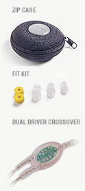 While i had previously enjoyed music (albeit briefly) through the e5, was impressed enough to get a review sample delivered to my home. These were not your typical units and wanted to further my experience. Upon receiving the E5 i was so eager that they immediately went into my ears after selecting the appropriate size of earpiece. What the...??? They sounded horrible! Bright highs, lacking bass and very little dynamics. Did i pick the wrong earpiece as this can make a big difference? There are small, medium, and large Fit pieces in the "Fit Kit" plus a foam insert as pictured below. Note, the Zip case is also included with the e5 for easy storage and holds both the e5 and extra fittings.