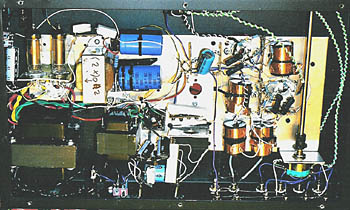 The OA2 regulators are mounted horizontally under the chassis and are isolated to minimize RF interference. I would have loved to have them on display on the top deck of the chassis just because they're fun to look at. But engineering logic dictated otherwise. The OA2's regulation range is from 5 mA to 30 mA. Hence, an operating current of about 17.5 mA at the nominal mains AC voltage would be ideal, as it allows the maximum swing in either direction (+/- 12.5 mA) in response to AC line fluctuations. The DC voltage measurements given in the schematic (for a line voltage near 120 VAC) show a voltage drop of 108 VDC across resistor R4 (2k ohm) By application of Ohm's Law that translates into a total current draw (6SN7 plus OA2) of 54 mA, of which 14 mA flows through the OA2s. Assuming a +/- 10 mA regulation range, means that the BV's power supply can maintain a constant load voltage for AC mains variations of about 6%.