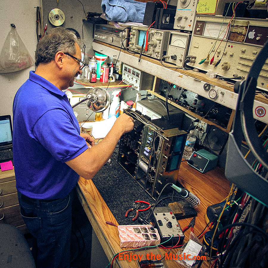 Ostby works strictly on tube-based electronics, but he avoids certain kinds of limited repairs. Vintage units that either reached or are approaching the 50-year mark, he does "complete restoration/rebuild or I'd rather not get involved since doing any type of "fix what is broke" type work will just end up with both parties unhappy as the next 50-year old failure prone component fails." With more modern tube gear from the 1980's and up, he says he will do basic repairs.