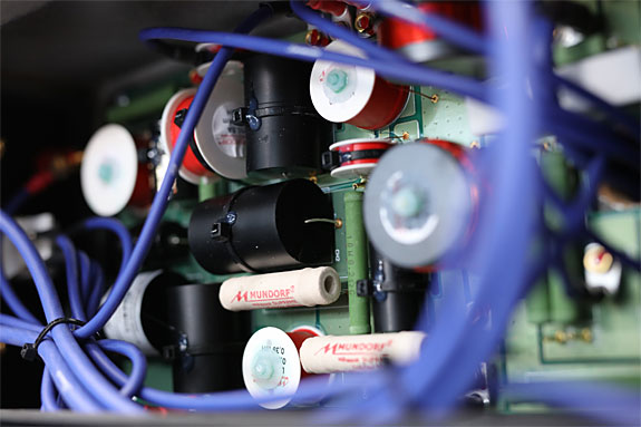 Strictest Quality Controls But a loudspeaker is of course not only made of its drivers. Only when all further elements have been considered with a similar attention to detail, one can start to fine-tune the sound with a clear conscience. It is therefore not surprising that the crossover contains several components from the Cologne-based supplier Mundorf, which enjoys an excellent reputation worldwide. The cables have been meticulously selected too – not only for their sound quality, but also for their compliance with all applicable regulations and safety standards, such as absence of pollutants, reaction to fire, etc. The intensive research and aim to minimize the cabinet's own movements and resonances, as well as the research put into the cabinet as a whole, goes without saying for Burmester.