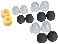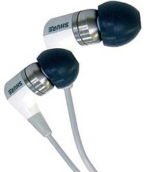 What earphones should I get for portable CD player, iPod or MP3 player? Will they work well in my home system? Are they comfortable? Can I use them on a plane? Will I be able to hear the doorbell? How good do they sound? How much should I spend? All good questions, and today I will attempt to answer them by examining two sets of canal earphones, the $249 super.fi 5Pro from Ultimate Ears and the $300 Shure E4c. Both manufacturers will tell you the key to a good sound is a good fit, and both offer an array of sleeves (or tips) to get the job done. You can go with disposable foam sleeves, which you compress with your fingers before insertion. After ten seconds or so, the foam will expand to provide a good fit. The disadvantage is that you have to keep replacing the foam sleeves due for reasons of hygiene. Foam also provides less isolation from external sounds than the alternatives, although this can be to your advantage in some situations. Walk down the street wearing foam sleeves on your earphones and you have a better chance to hear the cars approaching from behind.