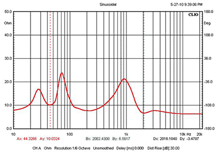 is 26 mm. Free air resonance (Fs) is 53.5 Hz on the woofers and 550 Hz on the
