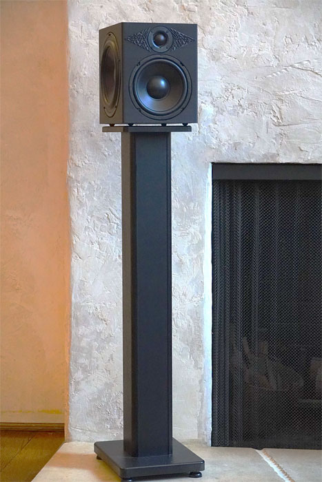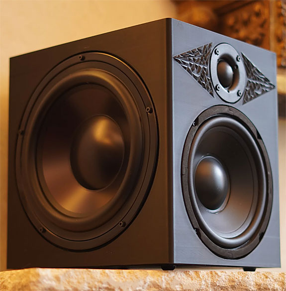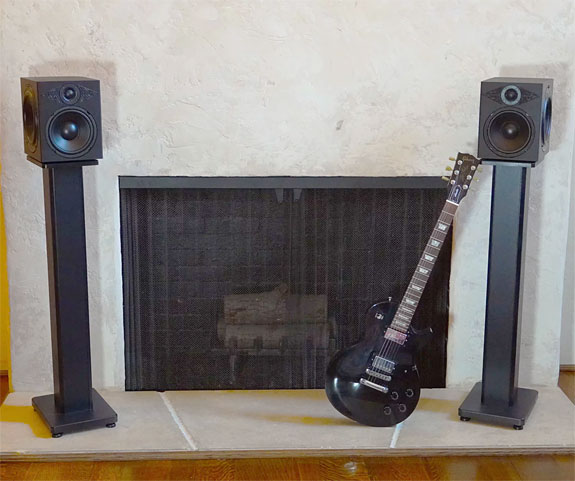 Set UP To my surprise, he was accompanied by his dad, David Chesky. Chesky Senior happens to be a brilliant piano virtuoso and composer, and he is the namesake of Chesky Records. When I first saw the speakers, I expected the printing process that forms the enclosures would leave a distinctive layered pattern on the speaker's surface. To my surprise, the terracotta-colored cabinets of my samples have a nice, uniform, slightly textured sandy finish. It must have taken about thirty minutes to position the speakers in my little room. First, they tried placing the speakers on a pair of my 28" high speaker stands. However, Lucca specified that the tweeters should be higher, closer to ear level. It was only a lateral move of two inches that finalized their placement. That position now has them 6' 3" apart on top of bespoke 36" high speaker stands. With the tweeter's face angled forward, they are now toed in approximately 25-degrees, pointing toward my seated listening position.