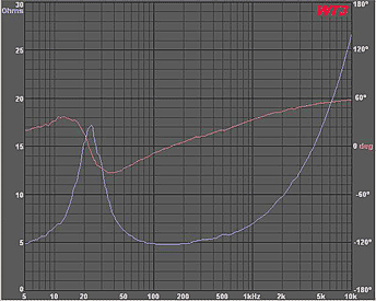 This Fs spike is probably not severe enough to warrant much correction. Note that it's only a 30% rise or so above the impedance minimum (though it takes place quite quickly). Some drivers, however, are much more difficult to work with. JBL 2426h on a horn is one of these. Horn speakers in general tend to have more challenging characteristics to work with and this is no exception.