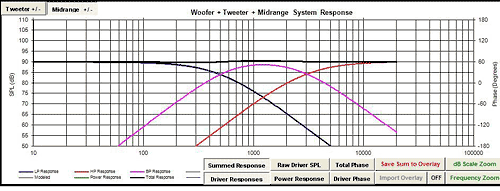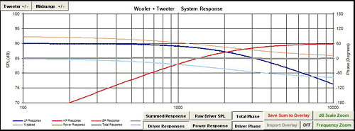 Crossovers are the hardest part of a loudspeaker. If you read here, you're likely already aware of the basic idea of a crossover, that being to pass only the desired frequencies to a driver- highs to the tweeter, lows to the woofer, etc. But crossovers also need to perform shaping of the driver responses, compensate for impedance behavior, match relative levels, and other functions. This article should help in interpreting what exactly a crossover does and how. Crossovers are a huge subject, so we'll get you started and give you the tools to begin advanced crossover design, but this is by no means an exhaustive write-up. Hopefully the reader will achieve familiarity with some concepts so that further research will be fruitful; some links are included at the end. There are three critical components to a crossover, amplitude (SPL), Phase, and impedance (the frequency dependent load presented, similar to "resistance" but with a complex reactive nature). The crossover's task is to create a desired SPL response, but the byproduct of amplitude shaping is phase shifting, and the impedance has to be considered throughout.