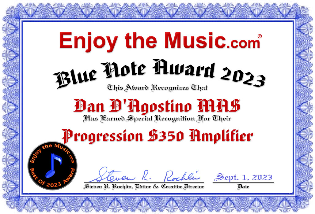 Recommending Given that I found absolutely nothing to complain about and lots to love regarding the Progression S350's sound quality, I have no problem recommending this power amplifier to those who can afford it. I'd feel much better if those audiophiles planning to purchase a D'Agostino Master Audio S350 Progression S350 power amplifier also donated money to a cause that can help those less financially fortunate. After I return this power amp to D'Agostino, I will certainly miss it!
