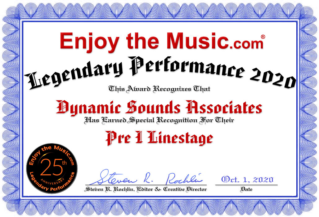 Confluence The DSA Pre I's performance is smooth and utterly non-fatiguing, yet richly detailed, with deep, articulate, and muscular bass, magically engaging mids, and sparklingly clear, delicately delineate highs. Its soundstaging and imaging abilities are pushing world class. It can recreate dynamic contrasts that can evoke a fight or flight response. Its ability to render any source it is fed accurately approaches that of the best available. Is its performance the equivalent of some of the pricier competitors I've singled out? Of course not! But it can afford the listener a lion's share of the exhilaration and expressiveness one experiences at the feet of those loftier priced, über preamplifiers. This is one stirring performer; one that is laden with truly useful features like the variable gain selection, phase inversion, and a headphone jack. Younger readers should be aware that there was a time when every preamp and receiver on the market included one. My hat is off to DSA for its inclusion. Further, it is a pure joy to operate. At this price point, one would expect it to perform well, but, sadly, not all gear that sounds this remarkable, has such stately and pleasing aesthetics or offers such a high degree of functionality. I'd like to make it clear that the way this linestage gets the job done is not just relevant, it borders on revelatory at its asking price. Much like the PhonoOne that I lived with for nearly a decade, and the more recent Phono II that has been my reference phonostage for the last 18 months, the Pre I offers extraordinarily refined sound that, while it is unmistakably exceptional, never calls attention to itself as being sonically spectacular. It delivers a presentation in which you find yourself utterly and inescapably immersed in musical expression, not caught up in "the sound." Finally, I'd like to make sure that this product be considered in its proper perspective. While the DSA Pre I may have the appearance of being a new product, given its recent appearance on the market, I assure you, it should be considered a fully realized product from a mature and seasoned designer. Doug has been doing what he has done with the Pre I in some form or another for decades. With the Pre I, DSA has set an extraordinarily high bar for a linestage preamplifier that will only be marginally bested at considerably greater expense. I know I will be deeply saddened the day the call tag for its return to Florida arrives. Most enthusiastically recommended.
