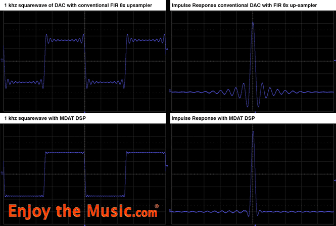 With MDAT processing, there is no pre and post ringing (please see the charts below), which is why MDAT unlike any other processing technology is unique in its ability to preserve the phase, frequency and dynamic integrity of the waveform.