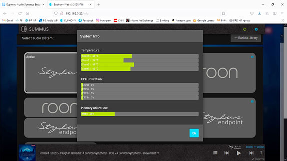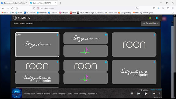 Conclusion I get the impression that Dalibor isn't particularly smitten with Roon, but it's the smart move to have your hardware give audiophiles easy access to what's currently considered the industry standard in library management. I use Roon because, quite simply, it works 99.9% of the time, and after spending countless maddening hours trying to cobble together a decent music server from open source and freeware applications, I caved and started buying a monthly subscription. I do like Roon's appearance, and I do like how relatively easy it is to navigate through your music library with Roon. If I could change anything in Euphony Stylus, it would be for their GUI to have your entire library available on a single page, much like Roon, rather than having to scroll through countless pages to find anything without mounting a search field. At least, at the very worst, this falls into the category of only being a mild inconvenience. But here's the real meat of the matter: when compared to the Euphony Stylus audio system on the Summus Server and with Stylus Endpoint selected on the Summus Endpoint — especially in playback when using the ramroot mode — any of the Roon audio system modes sound like absolute crap in comparison to Stylus. Stylus gives you loads of air, delicacy, transparency, and simply gobs of detail, whereas any of the modes featuring Roon sound, quite simply, totally pedestrian. And about as mid-fi as it gets; when I used Roon with the SonoreRendu setups, I mostly used it because I was tired of dealing with all the hassles of trying to make DLNA and UPnP open source setups work with the Rendus. And I hated, hated, hated the open source GUIs. In my current system, switching from the Stylus mode to any of the Roon modes just about sucks the life out my listening sessions. With the Euphony Summus Server and Endpoint setup and using Stylus for playback, I can hear through the crap, and judge it for what it is — Roon just doesn't sound that great. While some of Euphony's Audio System choices allow for Roon's library management in combination with Stylus or HQ Player music playback, I honestly believe that some sort of construct is going on when Roon is employed that negatively impacts the sound quality. Making it much less musically engaging than with Euphony's own Stylus. I'll probably continue to maintain my subscription to Roon, because as an audiophile journalist, it's basically expected of me. But from here on out, all my critical listening and listening for pleasure will be strictly through Euphony's Stylus. For the once in a blue moon headache I've experienced with the Euphony Summus Server/Endpoint setup, it's mostly been completely effortless. Once you get the drill down, you can often self-diagnose any problems that might arise, and it's usually a pretty simple fix. Most of the problems I've encountered on my end have been more than likely due to operator error, or misunderstandings about software and hardware setups between the equipment — like the Roon Core issue I talked about earlier. Or the occasional associated equipment hardware failure (like when the main board failed on my PS Audio SGCD!). My preferred system setup, which is the Euphony Stylus/Stylus Endpoint, is probably among the most simplistic to implement, but the reward of that simplicity is greatly ungimmicked sound — which is among the very best I've ever experienced, with very few hiccups of any sort along the way. The Summus Endpoint is a very worthy addition to the Euphony Summus system, especially with the available I²S configuration; I can't recommend it highly enough!