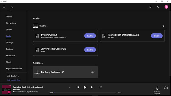 While I prefer the sound quality of Euphony Stylus, integration with Roon is completely seamless.