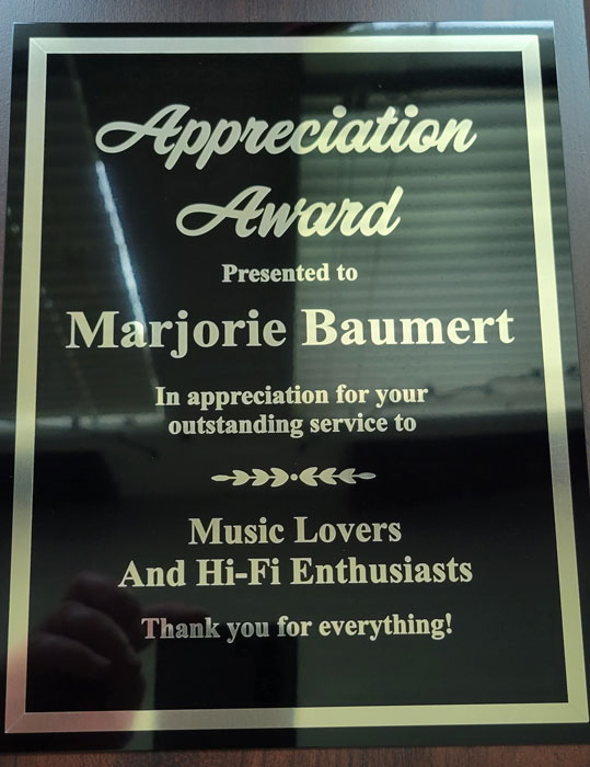 And so I was tasked to get a nice award and gift as a show of gratitude for her ongoing support of our industry. While RMAF in Denver is (sadly) within our rearview mirror, to this day Marjorie still comes to various shows and kindly lends a hand, as she knows the immense effort it takes from many to put on a successful event. During FLAX 2023, it was my honor to present Marjorie with an award and the gift of a golf putter as a show of our gratitude. We love you Marjorie and look forward to seeing you at various luxury audio events during 2023.