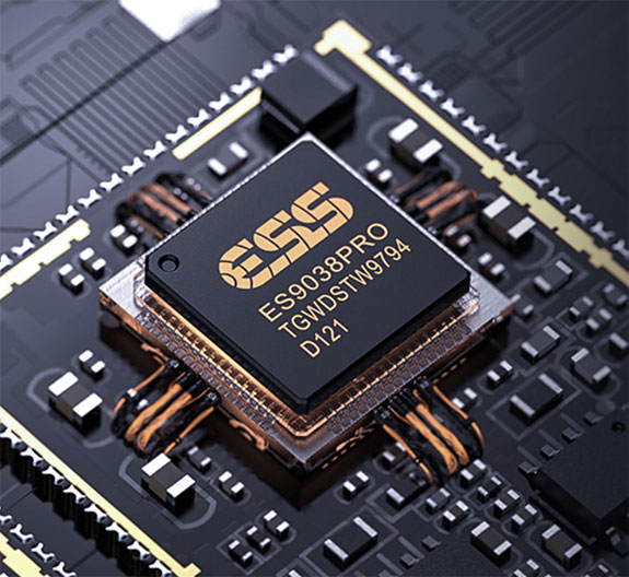 What I'm going to focus on is how the R9 is different from the R7. First, let's talk about the exterior. The R9 has a larger, high-resolution display, and a "fully liquid metal bicolor display". No, a Terminator is not going to pop out of the thing, but it's a really cool-looking metallic finish. It readily shows fingerprints, but FiiO was smart enough to provide a cloth to wipe those off. Some of the interactive changes include increased Bluetooth support with a QCC5125 chip and HDMI digital inputs. The amplifier now operates in eight-channel THX with a maximum output of 7300 mW. The biggest upgrade in the DAC chipset. The R7 utilizes one ES9068AS for both channels, while the R9 uses one ES9038PRO for each channel.