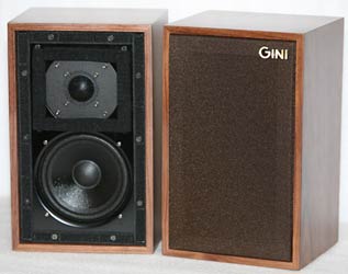 Gini Systems imports a Chinese version of the LS3/5a speaker that can be purchased as a $490 kit or as a $560 factory assembled pair. The finished product is a very nice satin finished walnut veneered speaker. Before I elected to get involved in this project I understood that the speakers were not an authorized BBC licensed product. Still curiosity nostalgia and a need to know compelled me to give it a go. I opted to the hairy chested macho route and I built the speakers from scratch. Well not quite scratch, I didn't exactly chop down trees or smelt copper ore but I did have to wash my hands a few times. The most difficult part of the project for a novice would most certainly have been component soldering. Almost too easy to assemble, the kit version comes with the crossover components soldered in place and the wire leads to the drivers and back panel attached and neatly labeled. The crossover is constructed with Chinese branded  capacitors both plastic film and electrolytic as are the inductors and resistors, these parts I am not familiar with. Also the one-inch soft doom tweeter and the five-inch mid/woofer supplied with the kit have no manufactures identification and so I cannot comment on parts quality.