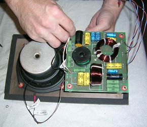 Using the supplied Phillips head machine screws bolt the front baffle to the enclosure (the speaker is now airtight). Than surround the tweeter by gluing four felt strips in a box shape to the front flange next attach the grill and you're done. Total time to complete assembly was a careful 1-hour and 10 minutes per speaker.