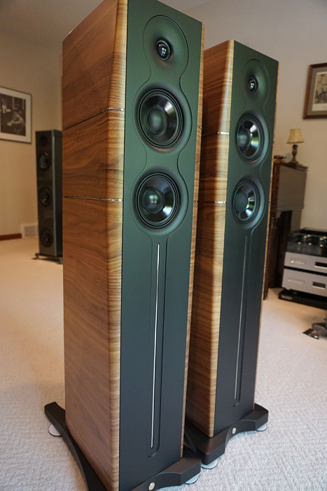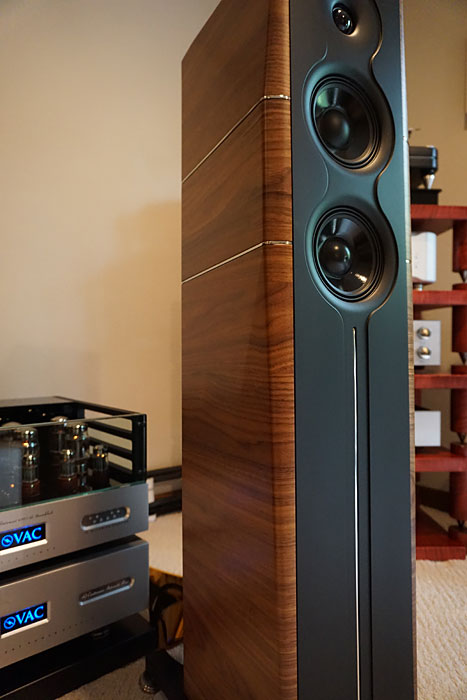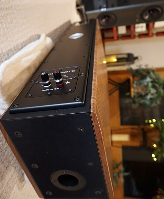 A true standout, the craftsmanship of the A6 EVO II (indeed, every piece I have personally witnessed in Gold Note's portfolio) is a work of beauty, impeccable in every detail. Nothing is a product of mass manufacturing, but rather a reflection of individual attention and care of assembly, down to the hefty gold-plated, nickel-free binding posts. Measuring 42.25" x 9" x 11.175 (HxWxD), the solid inert cabinet conveys a slim, handsome profile, the matte black sculptured front baffle offset with diamond-shaped walnut side panels to control resonance feedback. For those that favor, Gold Note also includes an attractive front baffle grill that fastens magnetically. Summatively, the reader may enjoy this informative "How It's Made" YouTube of the A6 EVO II, created by Gold Note.