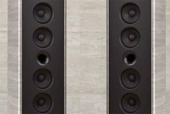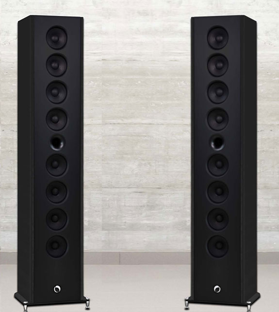 To offset a lack of electronic filtering, mechanical filtering behind the drivers and in the cabinets is utilized; essentially a mechanical crossover. These mechanical filters result in drivers with low Fs and high Qts, which work well with transmission line type cabinets. Driver break-up is minimized and performance is optimized. The cabinet itself is made of reinforced MDF and behaves as a tube with a downward firing port, functioning as a hybrid transmission line/bass reflex design. The port tube is too short to be considered a true transmission line, so Massimiliano refers to it as a Semi Resonance Tube (SRT). The use of a horn compression tweeter presents lighting fast, extended frequency performance (down to 7kHz) to permit the tweeter and woofers to each behave best in their native environments. The horn is designed in-house. The high pass filter cuts off in the region of 5kHz, where, as Massimiliano says, "the ear is a bit more 'crazy'." The entire speaker system performs in a physical state of semi-compression, which should yield faster transients, quicker base impulses, improved dynamics, and offer a more natural and effortless reproduction.