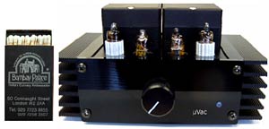 i like to rock, so on came Rush Signals remastered [Mercury 314 534 633-2] and yes this is the little amplifier that could at sane volume levels. David Chesky's Club de Sol [JD33] had a delicacy that most amplifiers only hint at. i find that when an amplifier produces incredible resolution and dynamic portrayal, the music sounds more relaxed. Yes, this little bugger has relaxed down in spades! There is more natural space as each instrument floats within the room. An oldie but a goody is Sonny Rollins Way Out West [Analog Productions CAPJS 008] had just the right horn balance of reed, breath, and metal resonance. My wife and i danced to certain song on Madonna's The Immaculate Collection [Sire/Warner 9 26440-2]. So where is the Achilles heel? Other than that very last smidgeon of ultra-high frequency sheen, nothing. Yes, you read that right, nothing! Am i saying the µVac is perfect? Hmmm... after a very long time thinking this out i would have to say it is the best damn amplifier i have ever heard in my life. Oh, and i did try it as a headphone amplifier with the Sennheiser HD600 with Stephan Audio Art cable (reviewed here) and if you are a Head-Fi kinda person this may be just the ticket to erotica! Forget those other headphone amplifiers, who shall remain nameless. Get yourself a µVac! We are in single digit wattage territory here so i have a feeling this review will only be good for headphone guys and those with over 95dB/W/m sensitive loudspeakers. Well, leave it to me to spend vast time and effort in hopes of reaching a niche, of a niche, within a niche market!
