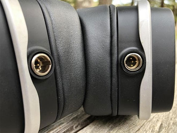 Reportedly, the mini-XLR plugs and jacks are uniquely wired. Where Audeze uses pin 1 for negative, the HEDDphone use a pin 1 positive configuration. A red ring on the connector subtly indicates the right side, and it is necessary to double-check the proper side with the small L/R indicator printed on the inside of the band.