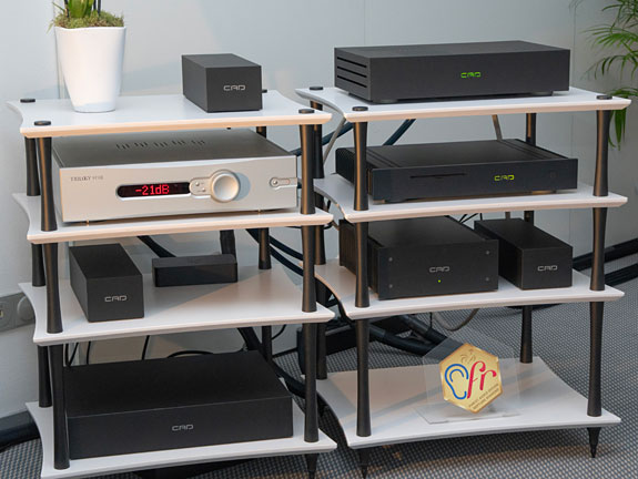 One system that I particularly enjoyed was that manned by CAD (Computer Audio Design) and Trilogy Audio. Scott Berry of CAD has completed work on the third generation of his 1543 MkIII DAC ($20,500) and this combined with his CAT streaming transport, numerous Ground Control devices including the GC-R Reference seen between the speakers, was allowing Trilogy's 915R pre-amp and 995R hybrid monoblock amps to drive a pair of Peak Consult El Diablo speakers in particularly engaging fashion.