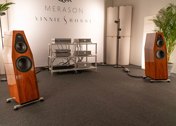 Amplification was provided by Vinnie Rossi monoblocks ($59,995 per pair), which in turn powered the QLN Reference 9 loudspeakers (€45,000). With cabling by Transparent and room treatment by HOFA-Akustik, this home audio stereo sound system is certainly high priced, but the sound was distinctly high-end audiophile in all the right ways.