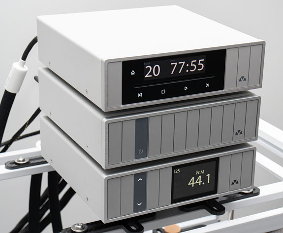 This was one of several rooms playing a cover of Brothers In Arms, with a Jadis I-70 integrated vacuum tube amplifier and Davis Acoustics The Stage loudspeakers. The sound was nicely focused and calm, with an ease that made it relaxing to listen to. Quite a rare quality at the HIGH END audiophile event. Métronome also demonstrated an early sample of the DST CD transport (€5,000), with a slot loading mechanism chosen for its quietness and reliability. Digital outputs include I2S via modern HDMI, AES/EBU via XLR, S/PDIF via RCA coax.