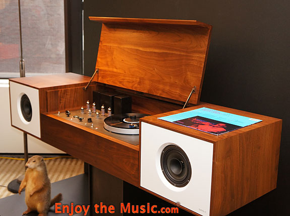 Symbol had their cool retro all-in-one system Modern Record Console $26,500. Anyone on Facebook or who regulars Enjoy the Music.com's Industry News page has seen these over a year ago. In person, it does look retro cool indeed! No "nice beaver" jokes, please.