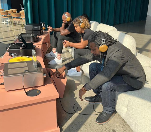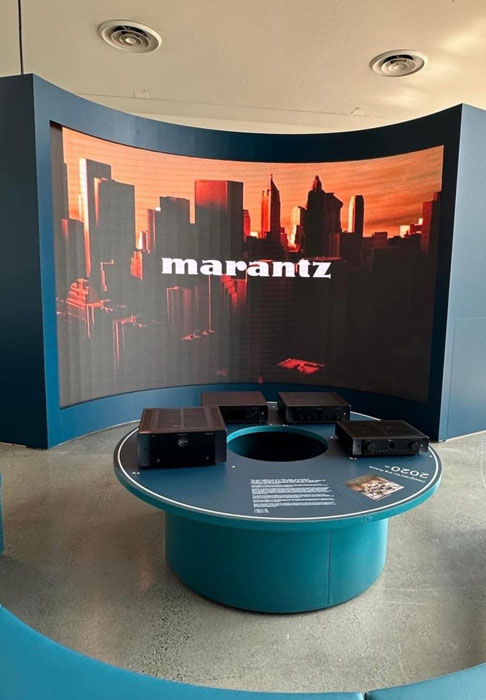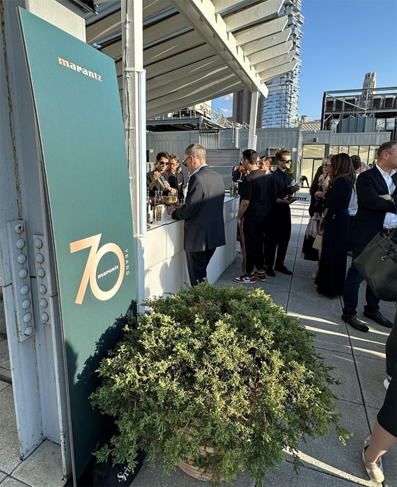 The Marantz event was held at Spring Studios, located in the Tribeca part of Manhattan, New York. It featured a 7000 square-foot interactive, immersive exhibit center and a rooftop VIP party. The exhibit center housed a theater where presentations were given by a variety of guest speakers, a specially constructed listening room, a museum that showcased Marantz's history and product lineage, a headphone audition station featuring Marantz electronics and headphones from its sister company, Denon, and a Vinyl Me Please record store.