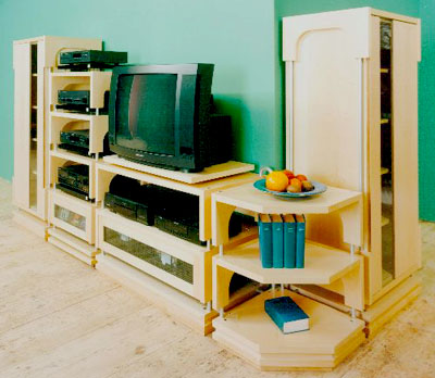 September 2002 From the forests of Austria comes Hifi Holz Hutter, a furniture maker with over fifty years experience and lead by architect and Vienna Technical University graduate Armin Hutter. The alpine forests are world famous for their tradition of old-world craftsmanship. Hutter continues this tradition by his commitment to producing furniture made of the highest quality alpine spruce and engineered not only for aesthetics but functionality. Here I shall review his series of hi-fi racks, the Hutter Racktime Basic. The first thing I noticed while unpacking these shelves was their considerable size and weight, as well as the quality of the blonde maple finish. Each shelf is constructed of three approx. one-inch thick components: the shelf itself and two side-pieces running the length of the shelf, which serve as the points connecting the shelves. The unit is available five finishes: maple, pear, satin black, cherry, and beech. As I said, this shelf is of considerable size at 23.6" wide and 18.7" deep, so it should be large enough to accommodate just about any component you choose to shelve, and consequently it will also be a noticeable feature of your room. While there is lightly over 6" separating the shelves, it is possible to increase that space to fit in even the biggest gear by using longer connectors that can be ordered separately. You probably would not want to put a shelf of this size in a small room since it would most likely dominate the entire room. That being said, I was nonetheless impressed with the sheer weight of each shelf as I unpacked it from the box, not to mention the flawlessly polished maple finish that adorned each component.