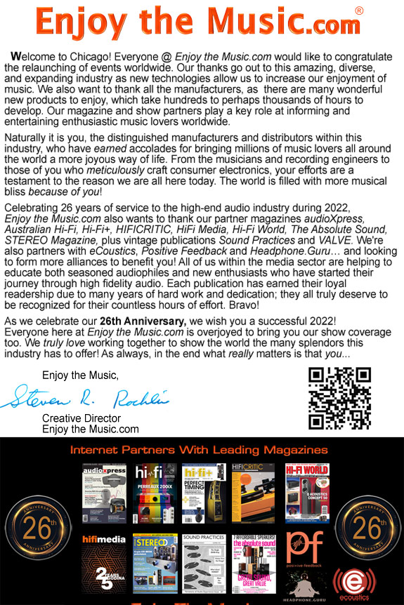 Welcome back to AXPONA 2022 in Chicago-ish, a well-attended and fun show that included families and proved that our interest in fine audio and music has not waned. Matter of fact, we are as enthusiastic as ever after our