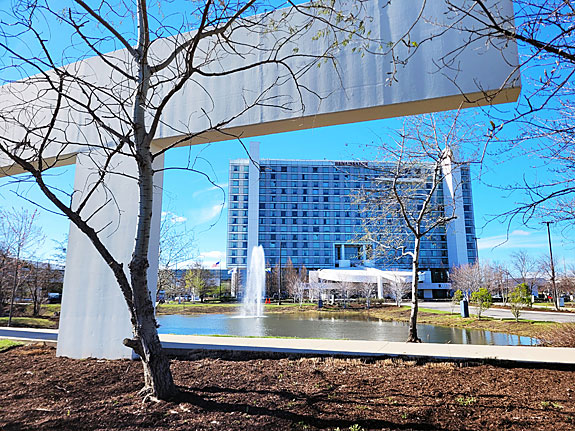That's where we register. That's where you can take the escalator up to the front desk of the hotel, or